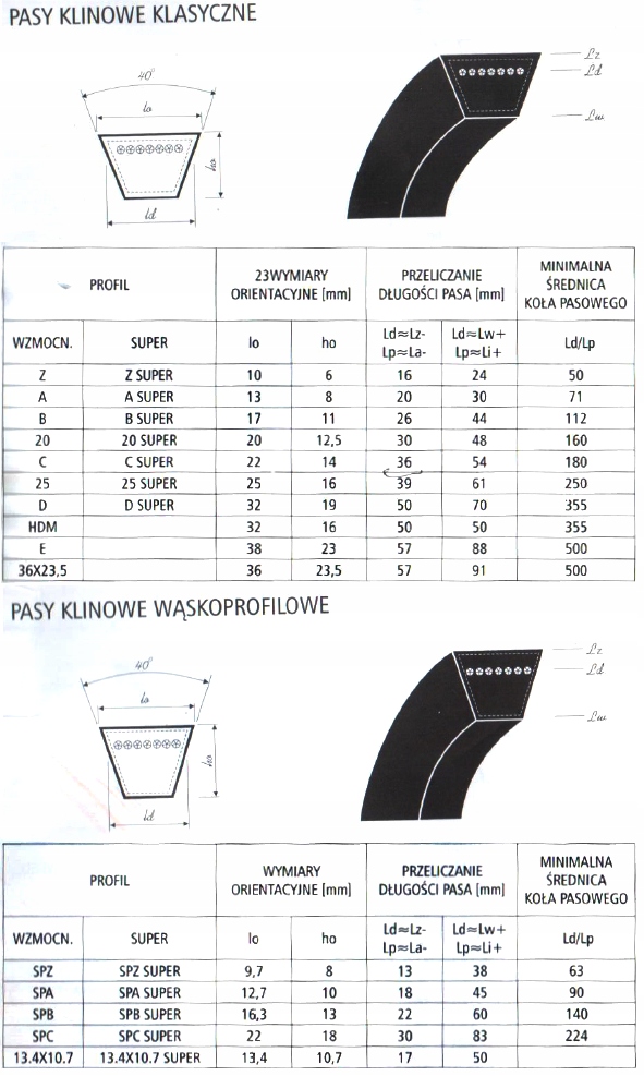 Pomiar długości pasa klinowego najlepiej przeprowadzić, owijając miarkę krawiecką wokół zewnętrznej strony pasa klinowego i odczytując wymiar długości. W przypadku braku miarki krawieckiej można użyć zwykłego sznurka, owijając go wokół pasa i przenosząc zaznaczoną długość na inną dostępną miarę, na przykład metrówkę budowlaną. Wynikowy wymiar stanowi długość zewnętrzną pasa, oznaczaną jako "LA". Jest to wartość najbliższa długości podziałowej, którą można znaleźć na pasie. W naszych ofertach występują oznaczenia "LD" lub "LP" czyli długość podziałowa a także "Li" czyli długość wewnętrzna, oraz "La" czyli długość po zewnątrz paska.